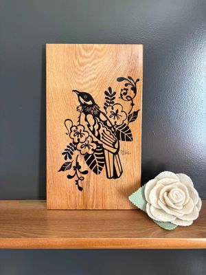Hand printed {think old school lino prints} - on beautiful NZ native thick rimu timber.